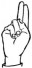 На ћирилици написано БЛАЖА КРСТОЈЕВИЋ састоји се из 15 слова [?]. Исписано ћириличном једноручном азбуком за глувонеме: